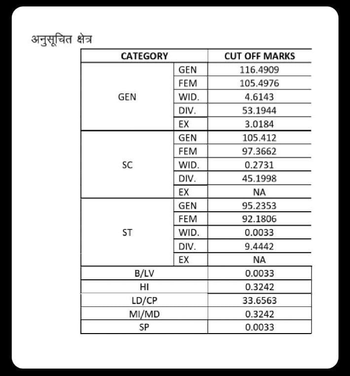 • TSP क्षेत्र में जनरल की कट-ऑफ 116.49 दर्ज की गई है।